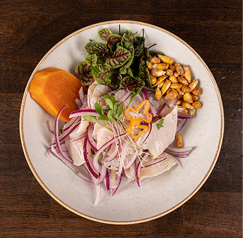 fresh local fish, lime, onion, ginger, coriander, dry corn